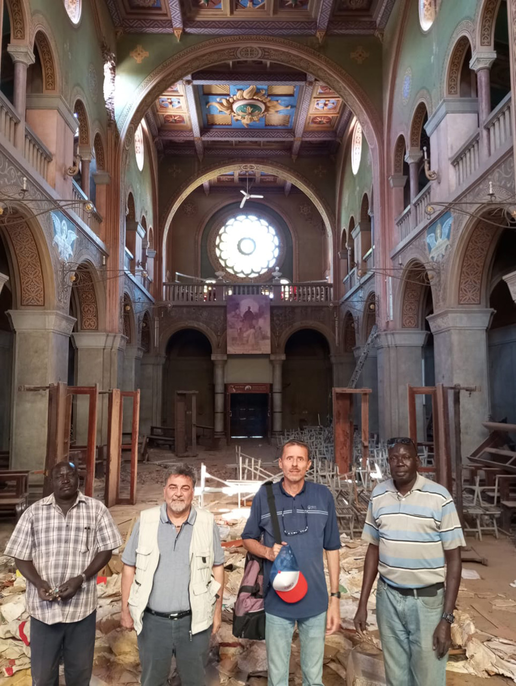 After further delays in obtaining permits, the General and the Provincial left on Thursday 13 for Omdurman, where they joined Fr. Yousif William and Fr. Lorenzo Baccin who had already moved two weeks earlier into the house of the Missionaries of Charity. On Thursday 14, they visited Khartoum (Comboni College, Villa Gilda, Saint Francis school and cemetery, cathedral) and our provincial house in Khartoum North. The desolation of the central area of Khartoum is now just timidly broken by few people footing in the empty streets, but already one can see here and there shops being repaired and men at work to piece together what remains of their houses and workplaces. Our provincial house, on the Nile bank, is quickly being claimed by vegetation, another reminder of life’s resilience and the passing of time; yet, all in all one is to be grateful that the structures are only slightly damaged. On Saturday 15, they visited the parish of Masalma, with its two schools. Hearing how teachers have been ready to work with almost no pay just in order to get children back to school is moving. On Sunday 16, the fathers celebrated with the Christian community in Thaura (block 48).